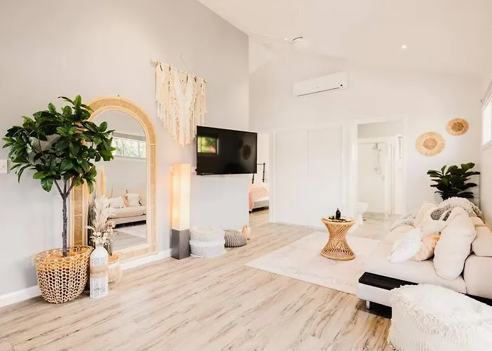 Az An Idyllic Boho Style Retreat High-End Kitchenware Villa 4 km-re van a The Star Gold Coast területétől és egy 2 hálószobás ingatlant kínál nyitott belső udvarral. Ehhez villához teljesen felszerelt konyha tartozik, valamint szobák tornáccal, kávé/teafőzővel és nagy sebességű internettel.
